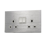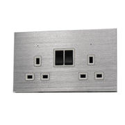 I LumoS Luxury Silver Brushed Aluminium 13A Switched UK Plug Double Socket