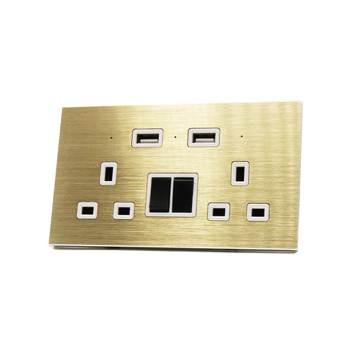 I LumoS Luxury Gold Brushed Panel 13A Switched UK Plug Double Socket with 3.1A Double USB Charger