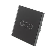 Black Glass Panel LED On/Off Touch Light Switches: These switches can turn the lights on/off and are operated by Touch. These switches are LED compatible as well as all Halogen bulbs and fittings. In addition, the Switch has a blue backlight for each Gang, making it visible in the dark making it easier to find your switch at night.