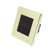 I LumoS Luxury Gold Brushed Aluminium Frame & Black Insert LED On/Off Touch Light Switches