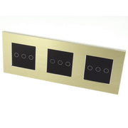 Gold Brushed Aluminium Frame LED On/Off Touch Light Switches: These switches can turn the lights on/off and are operated by Touch. These switches are LED compatible as well as all Halogen bulbs and fittings. In addition, the Switch has a blue backlight for each Gang, making it visible in the dark making it easier to find your switch at night.