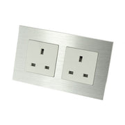 I LumoS Silver Unswitched Brushed Aluminium UK 13A Wall Plug Double Socket