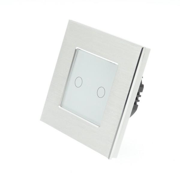 I LumoS PRO Silver Brushed Aluminium Frame & White Insert LED Smart WI-FI + RF On/Off Touch Light Switches
