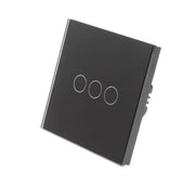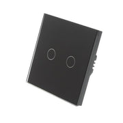 Black Glass Panel LED Remote On/Off Touch Light Switches: These switches can turn the lights on/off and are operated by Touch. These switches are LED compatible as well as all Halogen bulbs and fittings. In addition, the Switch has a blue backlight for each Gang, making it visible in the dark making it easier to find your switch at night.