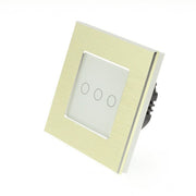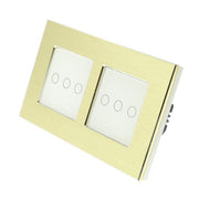I LumoS Luxury Gold Brushed Aluminium Frame & White Insert LED On/Off Touch Light Switches