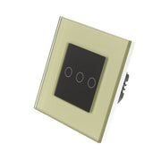 I LumoS Luxury Gold Glass Frame & Black Insert LED On/Off Touch Light Switches