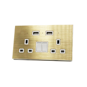 I LumoS Luxury Gold Brushed Panel 13A Switched UK Plug Double Socket with 3.1A Double USB Charger