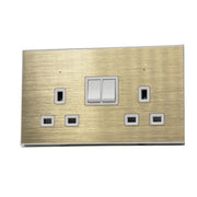 I LumoS Luxury Golden Brushed Aluminium 13A Switched UK Plug Double Socket