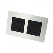 I LumoS Silver Unswitched Brushed Aluminium UK 13A Wall Plug Double Socket
