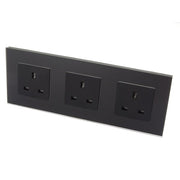 I LumoS Luxury Unswitched Black Glass Frame UK 13A Wall Plug Triple Socket