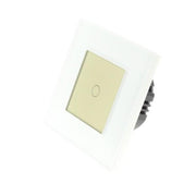 I LumoS PRO White Glass Frame & Gold Insert LED Smart Wi-Fi + RF Dimmer Touch Light Switches