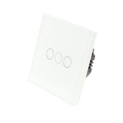 White Glass Panel LED PRO WIFI + RF On/Off Touch Light Switches: These switches can be used to turn the lights on/off, and is operated by Touch & by a Tablet or Smartphone. These switches are LED compatible and work well with most LED lights in the market. The Switch has a blue backlight for each Gang which makes it visible in the dark making it easier to find your switch at night. These switches require a Neutral Cable to operate. The WIFI + RF Switches are compatible with the I LumoS Wireless RF switches and work together to create 2 Way and intermediate control. These switches are also compatible with the I LumoS Remote controls.